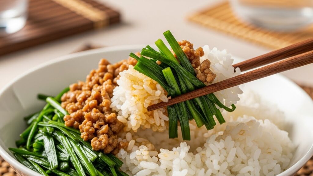 ‘파리 머리(Fly’s Head)’라는 무시무시한 별명을 가지고 있지만, 실제로는 잘게 썬 부추와 다진 돼지고기, 콩 등을 매콤하게 볶아낸 요리예요.