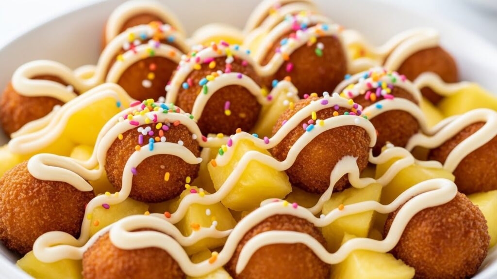 바삭하게 튀긴 새우에 달콤하고 상큼한 파인애플 소스가 듬뿍 묻어 있습니다.