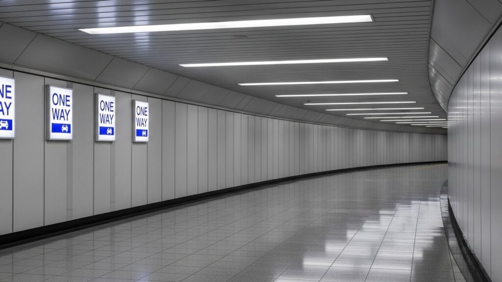 지하도 ‘One Way’ 표지판이 보이면 성공입니다. 호텔 로비까지 직통으로 연결됩니다.
