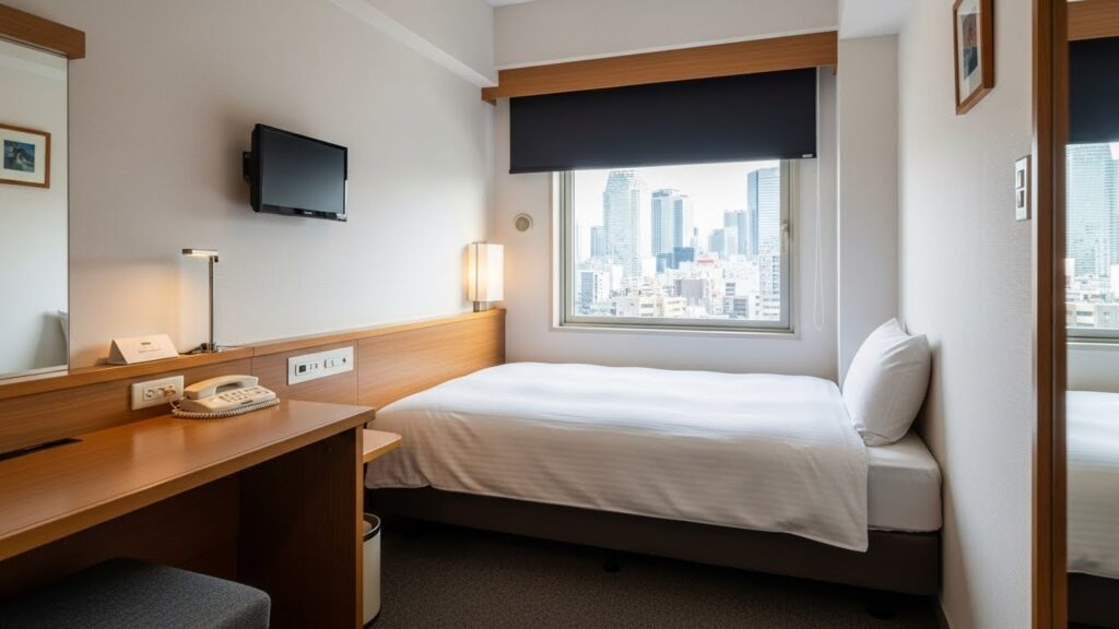 일본 비즈니스호텔이 좁은 건 알았지만, 여기는 정말 공간 활용의 극한을 보여줍니다.