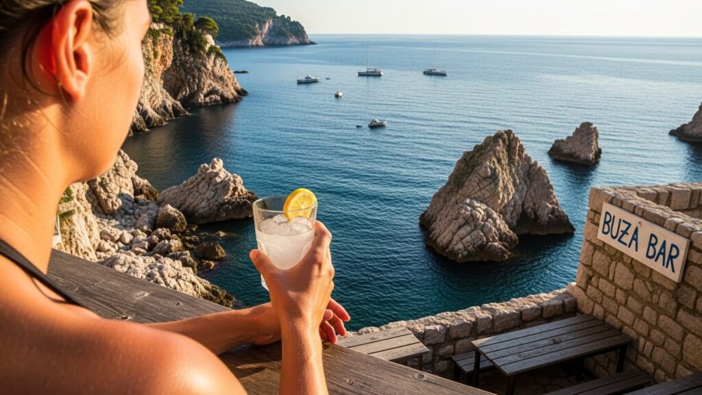 또 하나 팁을 드리자면, 성벽을 걷다 보면 절벽에 아슬아슬하게 매달린 ‘부자 바(Buza Bar)’가 내려다보입니다. 성벽 투어가 끝나고 저기서 레몬 맥주 한잔하면 그게 바로 천국이죠.
