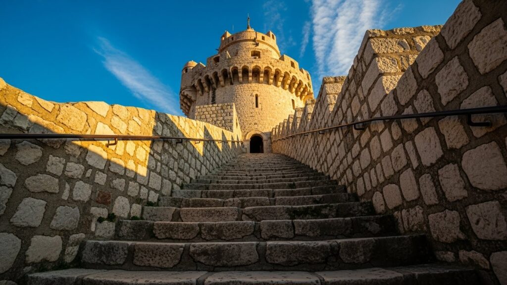 성벽 위에는 그냥 지나치기 아까운 포인트들이 숨어 있습니다. 특히 ‘민체타 요새(Minceta Tower)’는 성벽에서 가장 높은 곳으로, 두브로브니크 시내 전체를 한눈에 담을 수 있는 최고의 뷰포인트입니다. 조금 힘들더라도 꼭 꼭대기까지 올라가 보세요.
