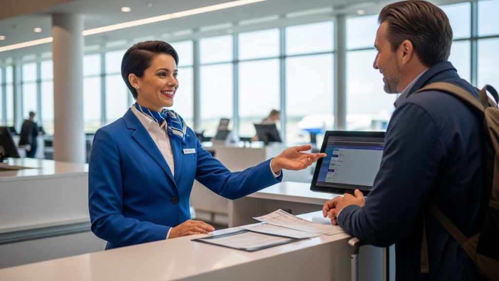 “공항에 조금 일찍 도착해서 지상직 직원에게 정중하게 문의해 보세요.