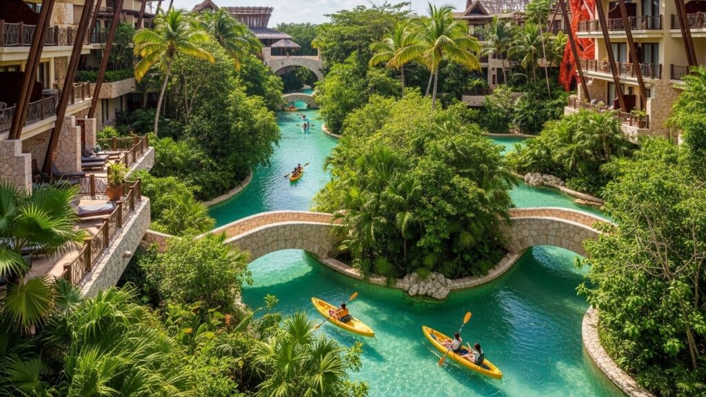 여기는 그냥 호텔이 아니에요. 거대한 테마파크 안에 호텔이 있는 느낌? ‘올 펀 인클루시브(All-Fun Inclusive)’라는 개념을 도입했는데, 이게 진짜 대박입니다.